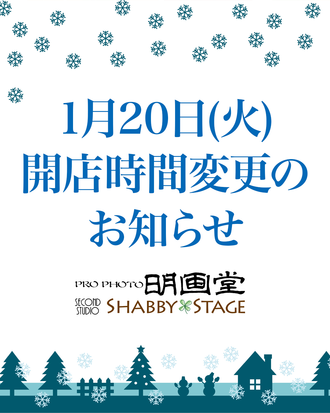 [5070] 開店時間変更のお知らせ 1/20(火)